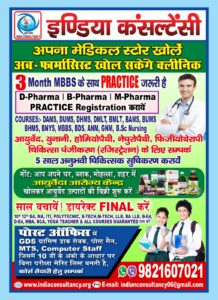 सही समय पर अच्छे निर्णय लेने में मदद करता है| सही कॉलेज का चयन करने में भी मदद करताहै| शैक्षिक सलाहकर छात्रों की प्रोफाइल का विश्लेष्ण करेंगे, और छात्रों को पढ़ने के लिए सही विश्व विद्यालय एवीएम कॉलेज का सुझाव देंगे| शैक्षिक सलाहकर भी प्रवेश प्रक्रिया का मार्गदर्शन करते हैं| Register with Experience Medical Practitioner course and Council Registration Get jobs at different departments in Hospitals Get all information about getting Jobs. 100% guarantee for jobs All courses are valid for Government and non-Government Jobs |